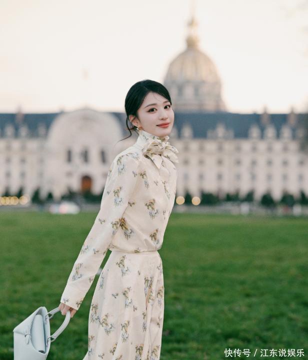 有人说这是“老天爷赏饭吃”,可只有她自己知道,为了这一秒的惊艳,她在后台对着镜子调整了二十次肩线。就像作家亦舒说的:“真正的优雅,是刻在骨子里的自律。”王楚然的美,从来不是一蹴而就,而是十年如一日的沉淀。秀前的碎花裙叠穿,更是把她的穿搭智慧展现得淋漓尽致。米白色碎花裙外搭牛仔短外套,蝴蝶结领口把天鹅颈衬得愈发修长,浅蓝手包和淡粉墨镜的搭配,让甜酷风平衡得恰到好处。有人质疑“碎花裙+牛仔外套”的组合太普通,可王楚然用172cm的身高和清冷气质,把“路人款”穿成了“春日穿搭模板”。